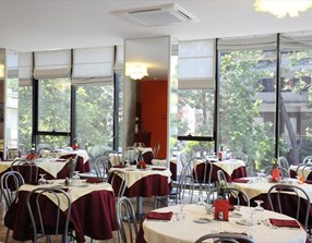 La salle à manger est spacieuse et lumineuse, complètement rénovée et climatisée.