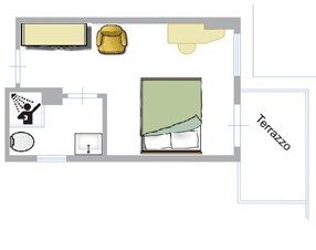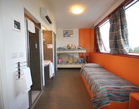 Due di queste sono particolarmente ampie: sono le family-room 414 e 413 che possono ospitare, rispettivamente, fino a cinque e sei persone.