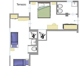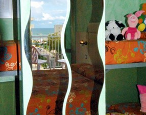 In alternativa, ai piani inferiori, proponiamo camere comunicanti dotate di doppia entrata, doppio balcone e doppi servizi per un massimo di 5 ospiti.